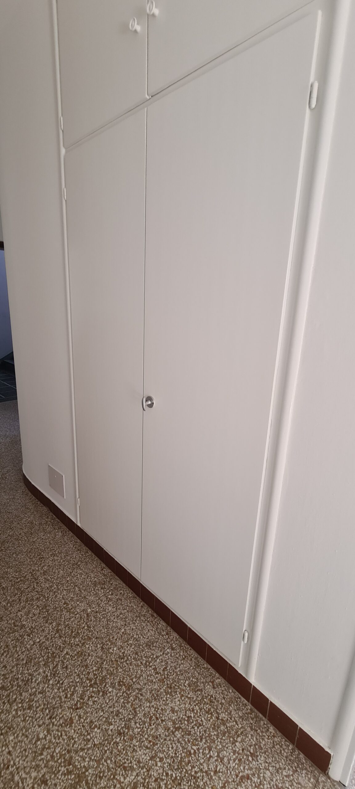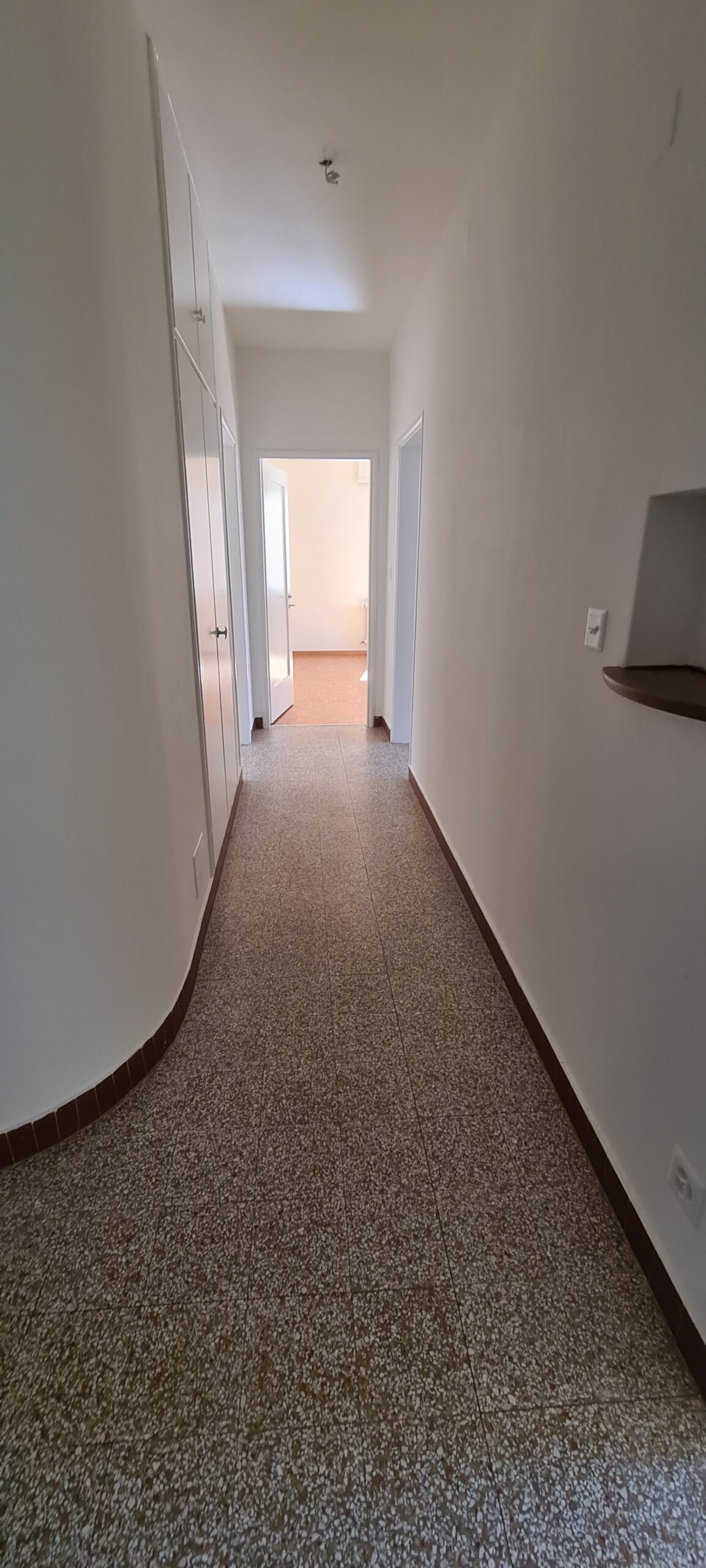L’appartamento è così composto: entrata con piccolo armadio a muro, 2 camere, 1 soggiorno con balcone grande, 1 sala da pranzo con balcone, cucina abitabile, bagno con doccia e predisposizione per lavatrice, cantina. No posteggio e no ascensore.